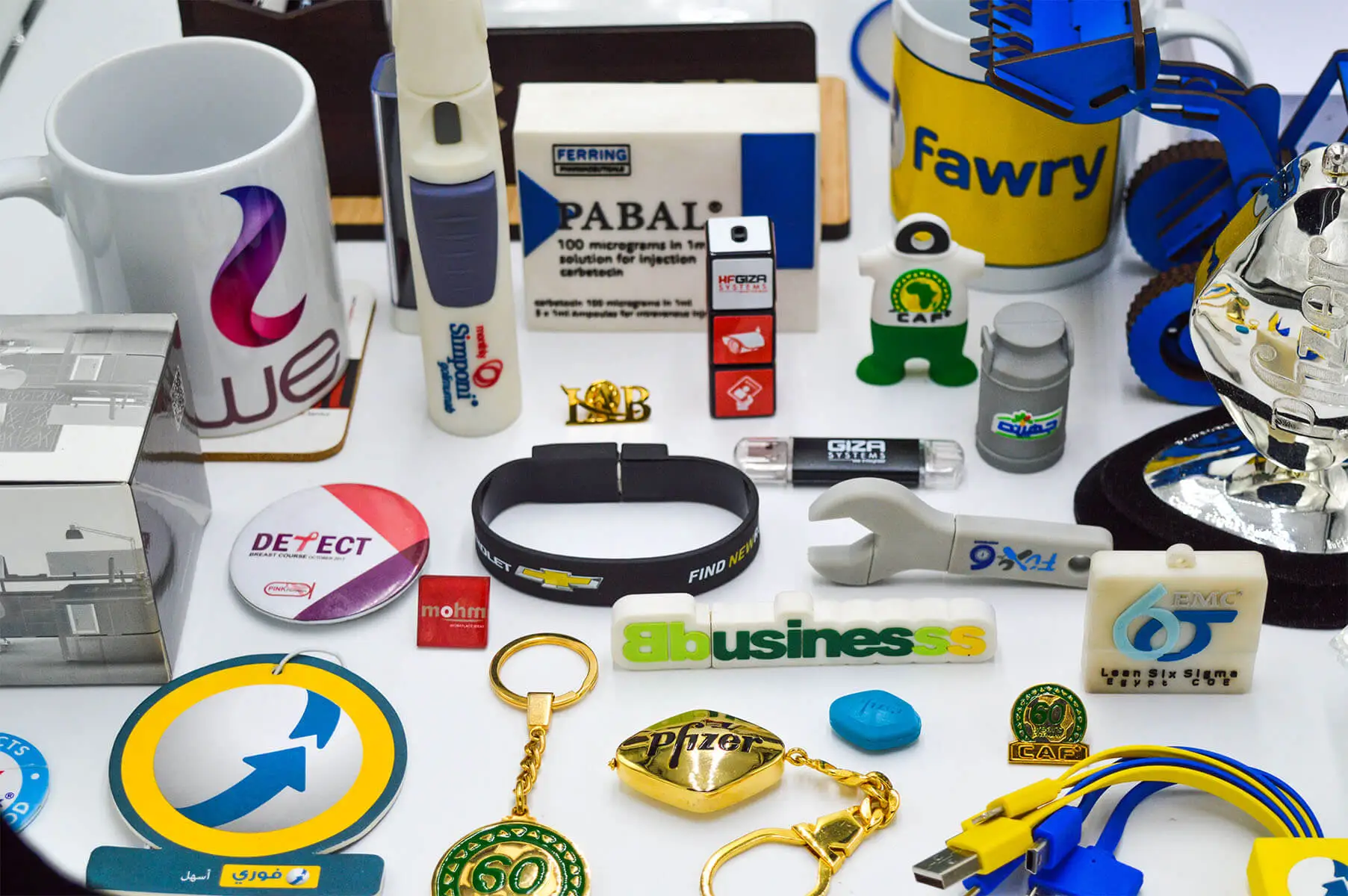 Customization shall include custom keychains Egypt, customized notebooks Egypt, custom mugs Egypt, water bottles, branded items and trade show products with your company logo.